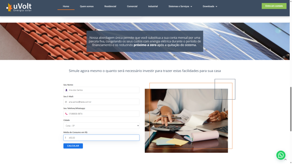 Desenvolvemos para a uVolt um simulador integrado ao site institucional, com alto foco em conversão. A proposta era simples: permitir que o próprio consumidor inserisse suas informações e recebesse uma estimativa automática, rápida e confiável.