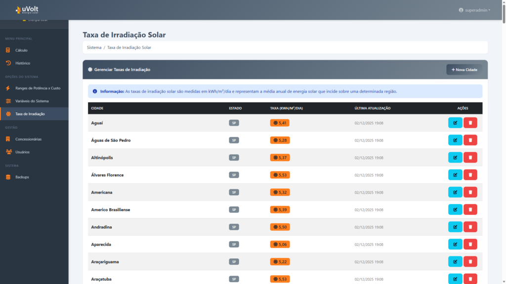 Empresas de energia solar lidam diariamente com simulações complexas. A partir da conta de luz do cliente e da cidade onde o sistema será instalado, é possível identificar: