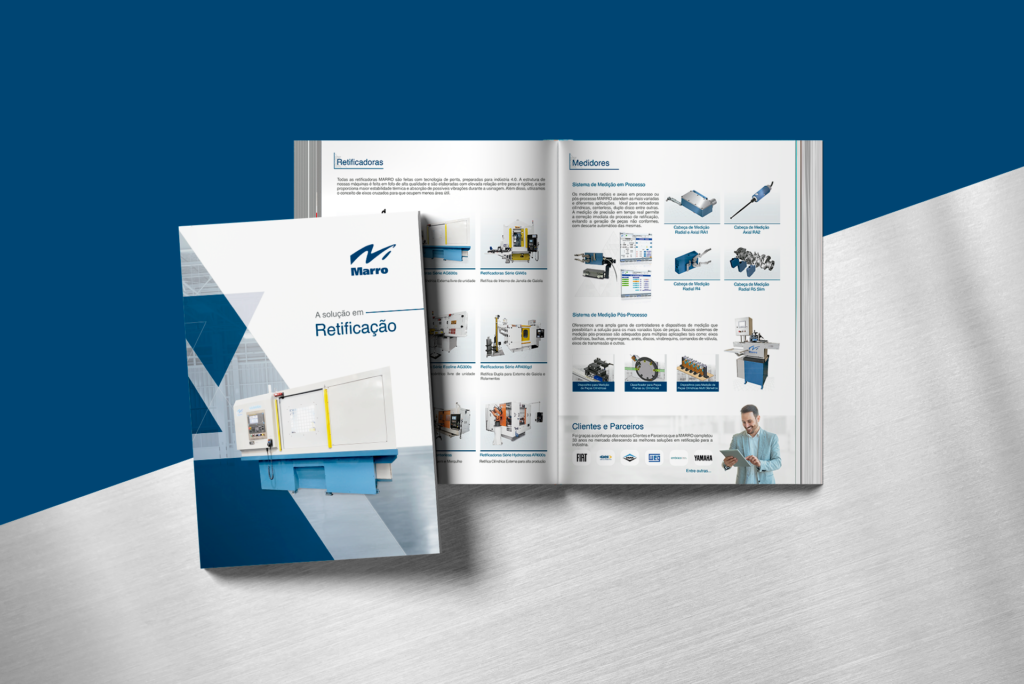 Também desenvolvemos um novo catálogo institucional, com foco em organização, clareza técnica e valorização da marca. O design foi pensado para transmitir profissionalismo e estrutura. A diagramação facilitou a leitura das informações técnicas e reforçou a percepção de empresa consolidada e preparada.