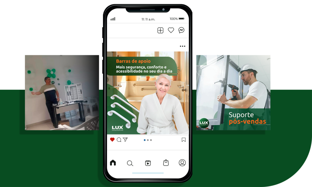 Foi com esse objetivo que a Lux Esquadrias nos procurou: atualizar sua imagem institucional e reposicionar a empresa em um padrão mais moderno, competitivo e alinhado ao nível de qualidade dos seus produtos.